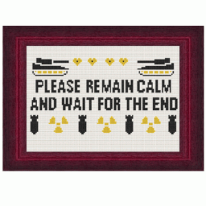 Retro-datakonst (ASCII) i kombination med moderna ordspråk. ASCII står för American Standard Code for Information Interchange och är en standard för att digitalt koda bokstäver och tecken. ASCII har också fått ge namn åt bilder och animationer som använder sig av tecken för att forma bilder så kallad ASCII-Art. Till exempel är ”smileys” en typ av ASCII-Art. Det är retrodatakonst i sin mest ursprungliga form. Vi tyckte det var roligt att upptäcka hur lika ACSCII-bilder och korsstygnsbroderier är. Nytt möter gammalt, den digitala tidsåldern möter handarbetets lugn, ro och meditativa inslag. Det är retro möter retro.